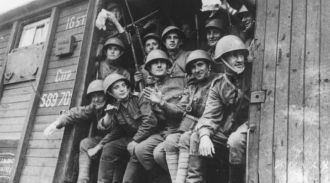 Żołnierze 1 dywizji im. Tadeusza Kościuszki w drodze na front, fot. Wikimedia Commons